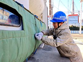 全員加班為變電站設備做防凍保溫,為網(wǎng)控變電站的關鍵開關設備“穿”上定制保溫棉衣;另一路由經(jīng)驗豐富的老員工牽頭,對空壓機管路及附屬設施加裝保溫層,”班長趙詩宇一邊指導年輕員工郝巖包裹開關接線口。